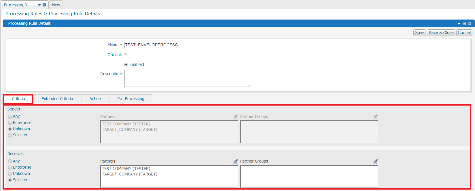 Navigate 탭에서 Applications > Administration > Integration > B2B > Processing Rules을 클릭합니다.