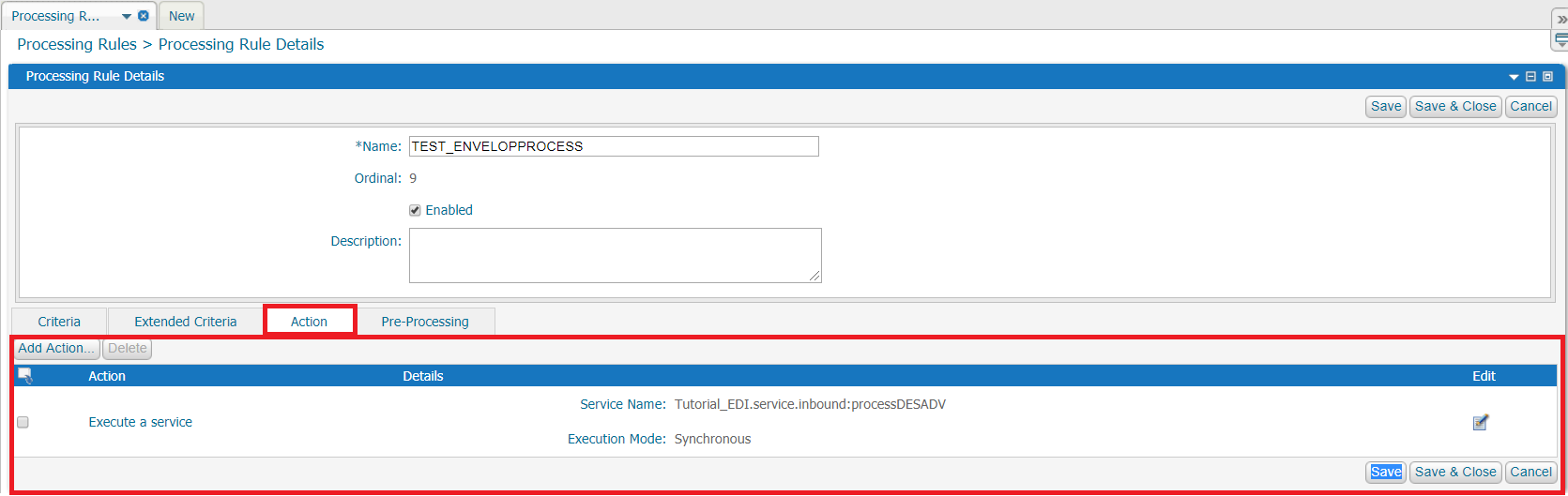 해당 탭은 EDI 서비스가 실행 될때, Ordinal 순서대로 (0번 부터 ~ ) 순차적으로 진행하며 조건에 부합하는 Process가 있다면 해당 Process Action을 진행합니다.