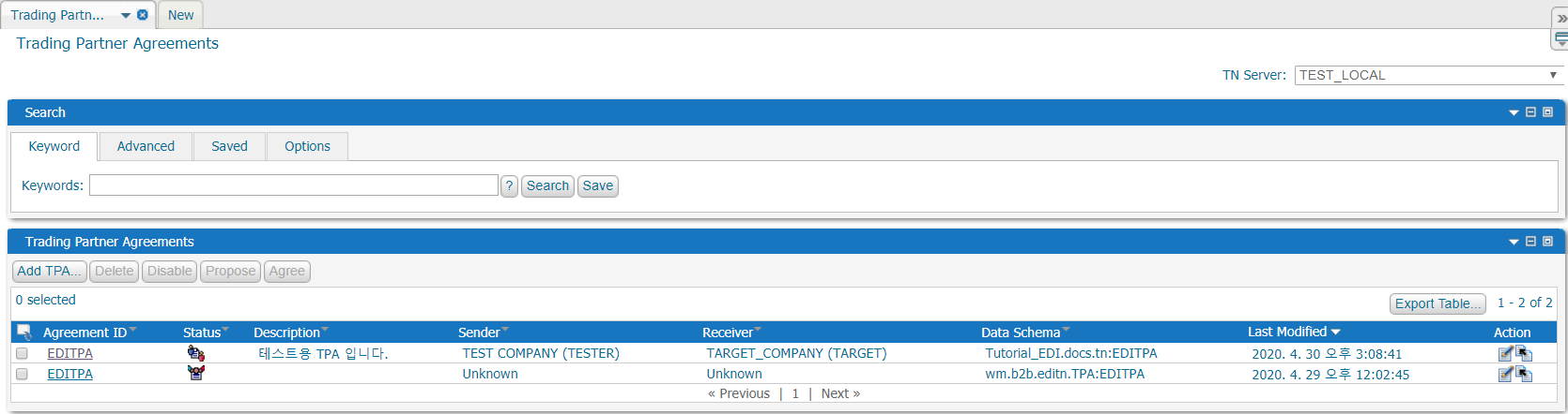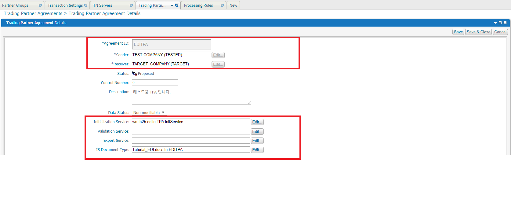 Add TPA를 클릭하면, 상단에는 해당 TPA가 적용되는 Sender 와 Receiver를 선택할 수 있습니다.