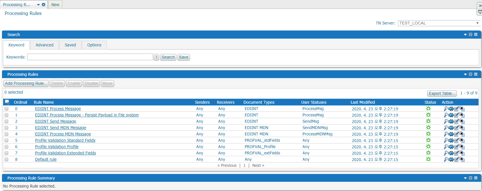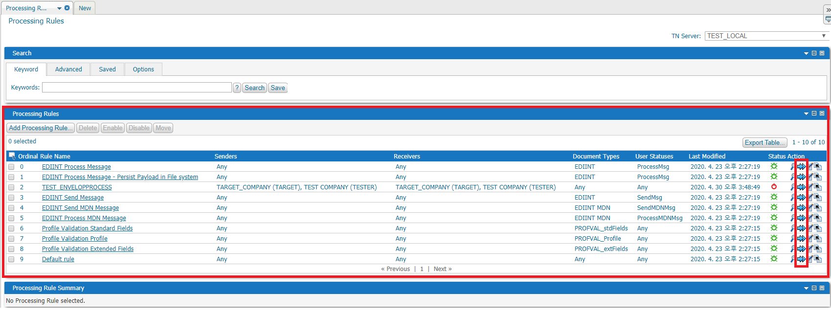 Processing Rules의 순서는 우측 화살표를 통해 이동 시킬 수 있습니다.
