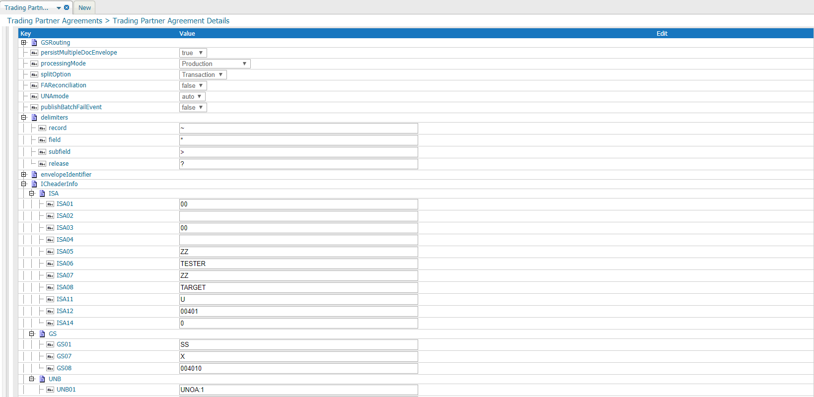 해당 탭은 설정하지 않는다면 기본 생성 되어있는 EDITPA 를 사용하며 , 일반적으로 파트너사마다 업체에 따라 구분자 및 상세 정보가 달라