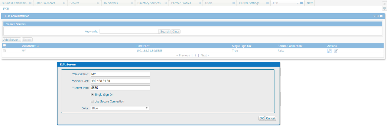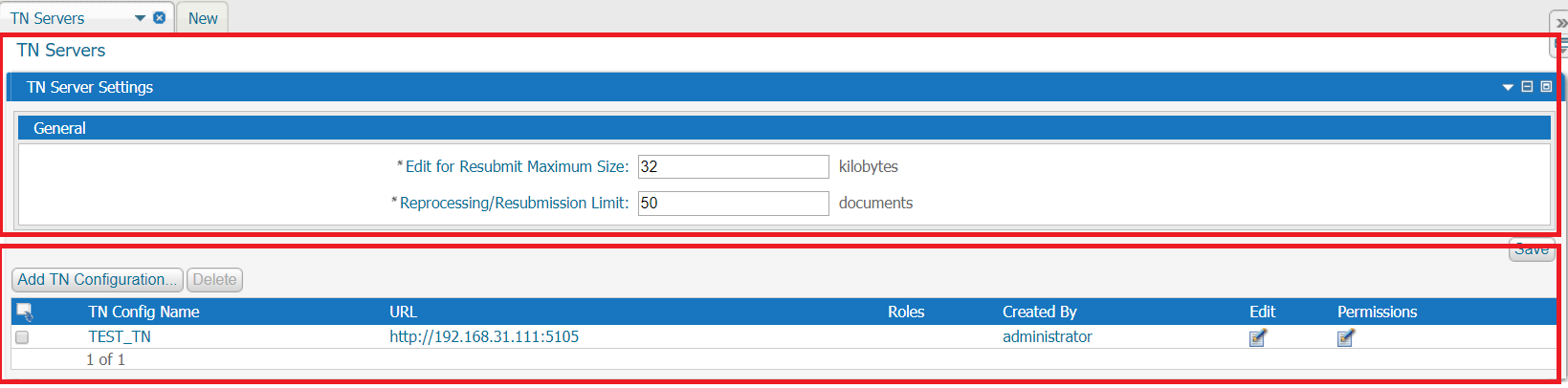 Navigate 탭에서 Applications > Administration > My WebMethods > System Settings > TN Servers 을 클릭합니다.