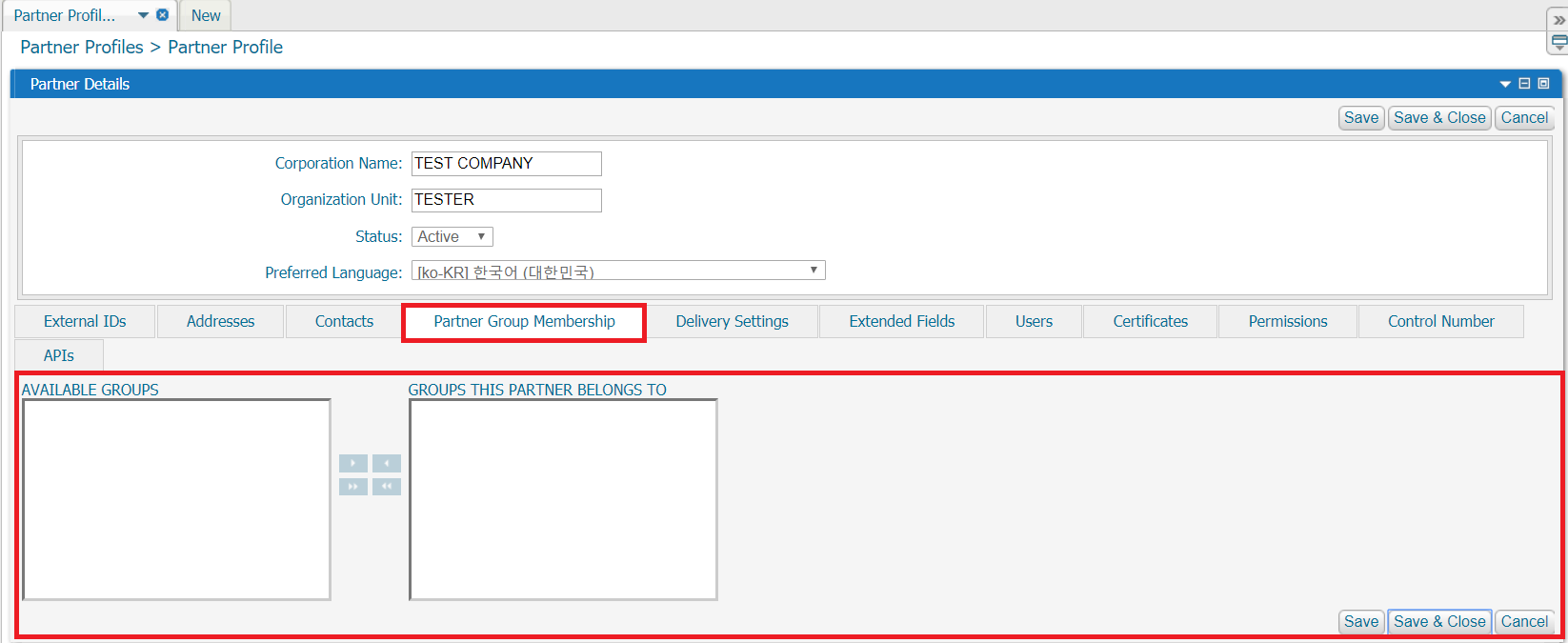 Partner Group Membership 탭에서는 프로세스 룰을 하나의 그룹으로 묶어서 같이 사용할 수 있게 합니다.