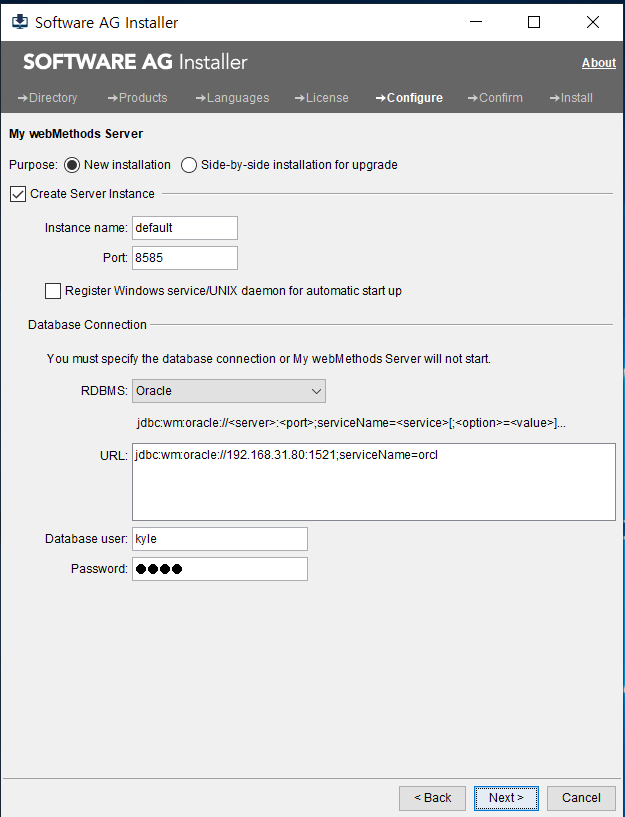 MyWebMethods 는 TrandingNetwork를 지원해줄 예정이며, 반드시 RDBMS 정보가 필요합니다.