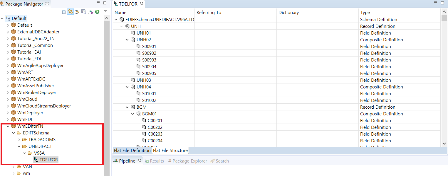 스키마 생성 위치는 WmEDIforTN > EDIFFSchema 에서 확인할 수 있습니다.