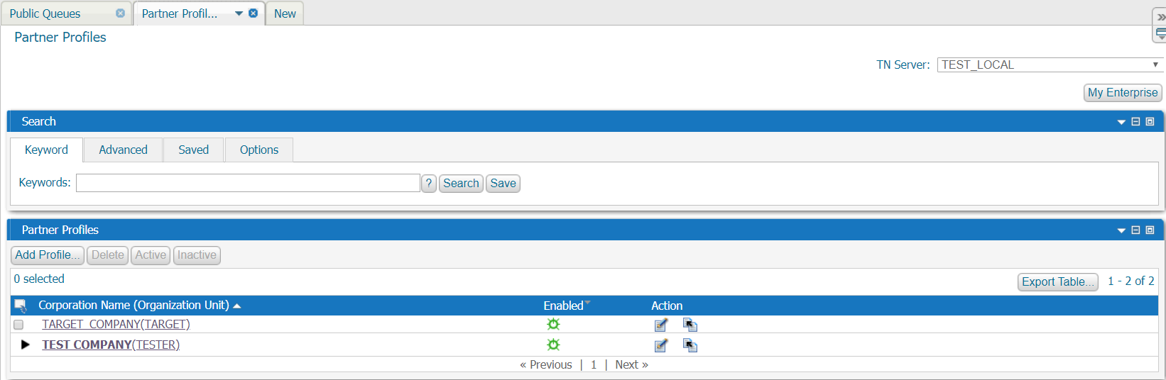 Navigate 탭에서 Applications > Administration > Partner Administration > Partner Profiles 을 클릭합니다.