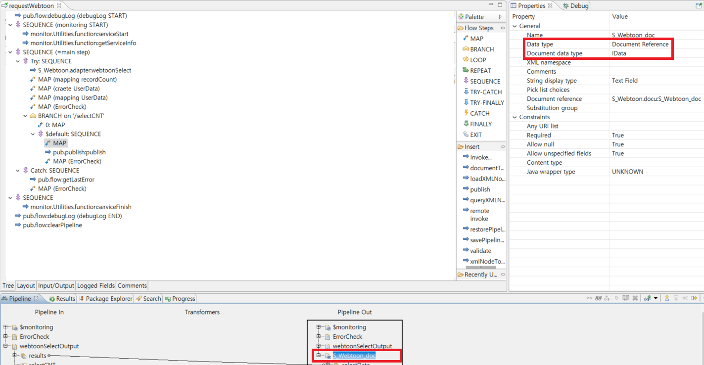 4. pub.publish:publilsh -> DocumentTypeName : doc 경로 설정 Document에서 담아주기