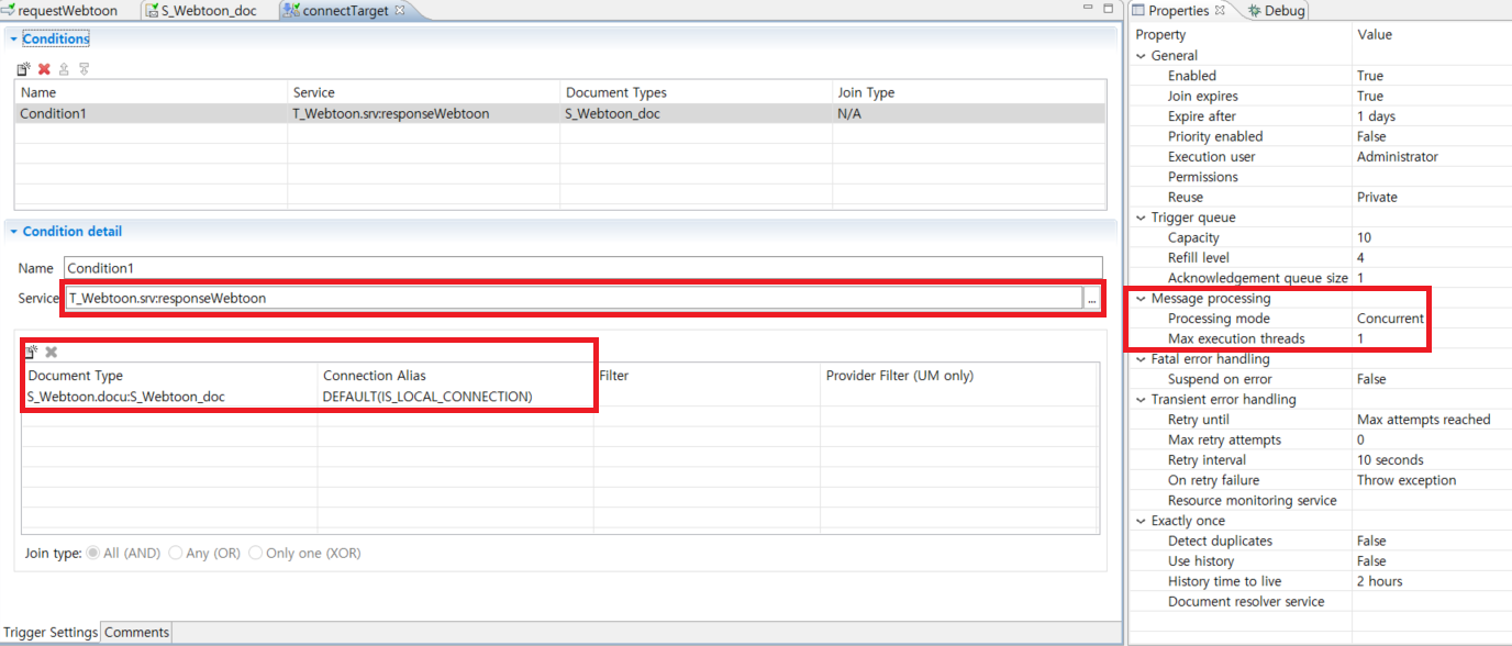 webMethods Messaging Trigger 내에 Document 2개 이상 등록 시, Connection Alias 충돌이 발생한다.
