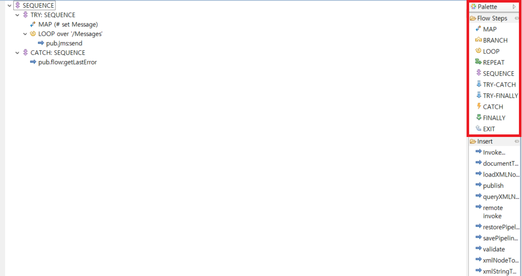 예전 버전의 webMethods의 경우, flowService 안에 Try-Catch가 따로 존재하지 않았습니다.