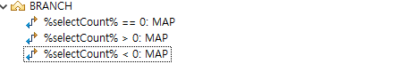 아래 샘플의 경우 selectCount == 0이라면 첫번째 MAP으로 이동